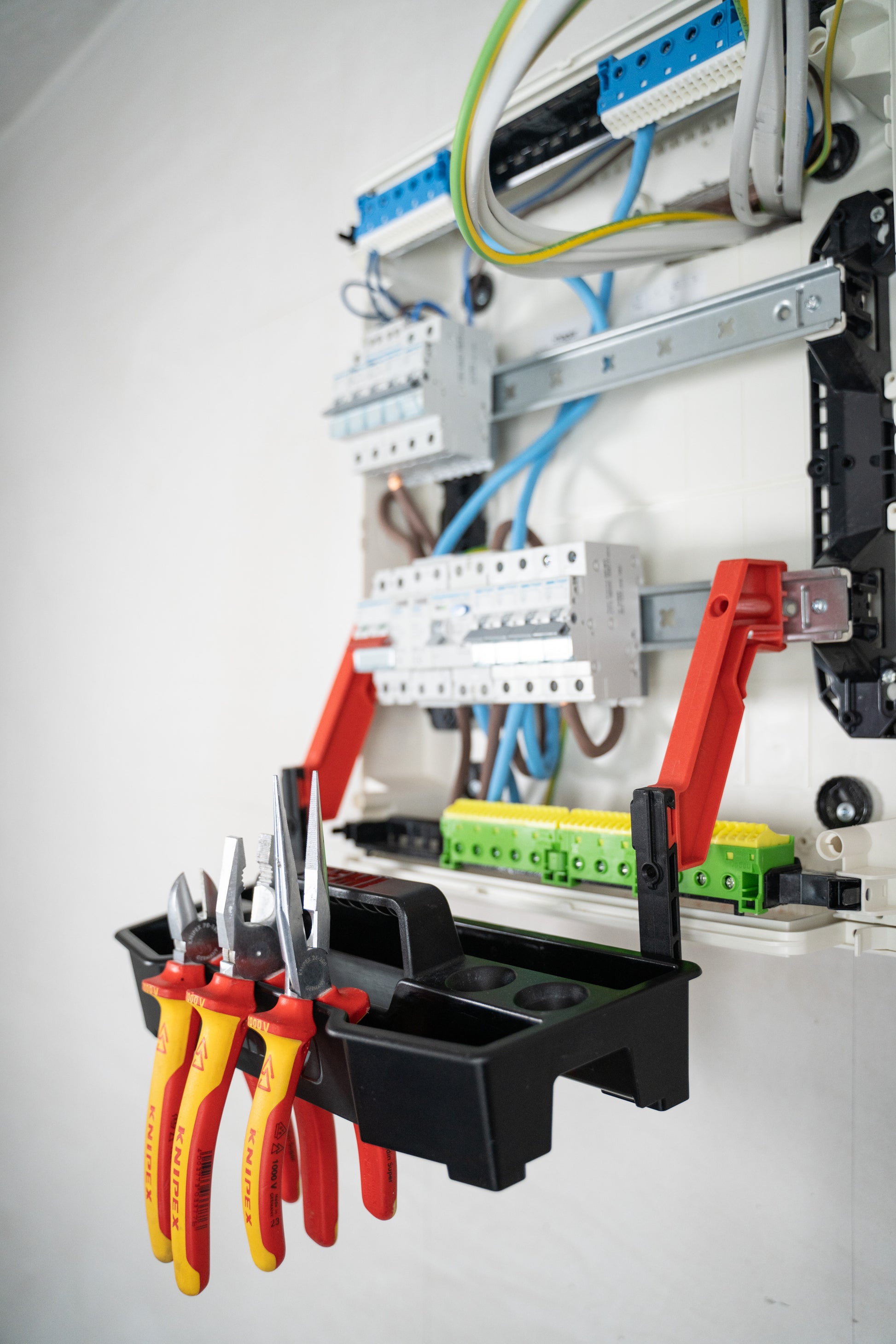 REMI® Dropper arms are designed to be used with a Remi Tool Tray and to allow extra mounting and positioning options. Use the dropper arms in combination with mounting arms to provide a lower tray position on a fuse-board. Use of dropper arms on their own allows you to mount your tool tray to a wall, ladder or other flat surface by use of the screw/bolt holes included on the dropper arms.