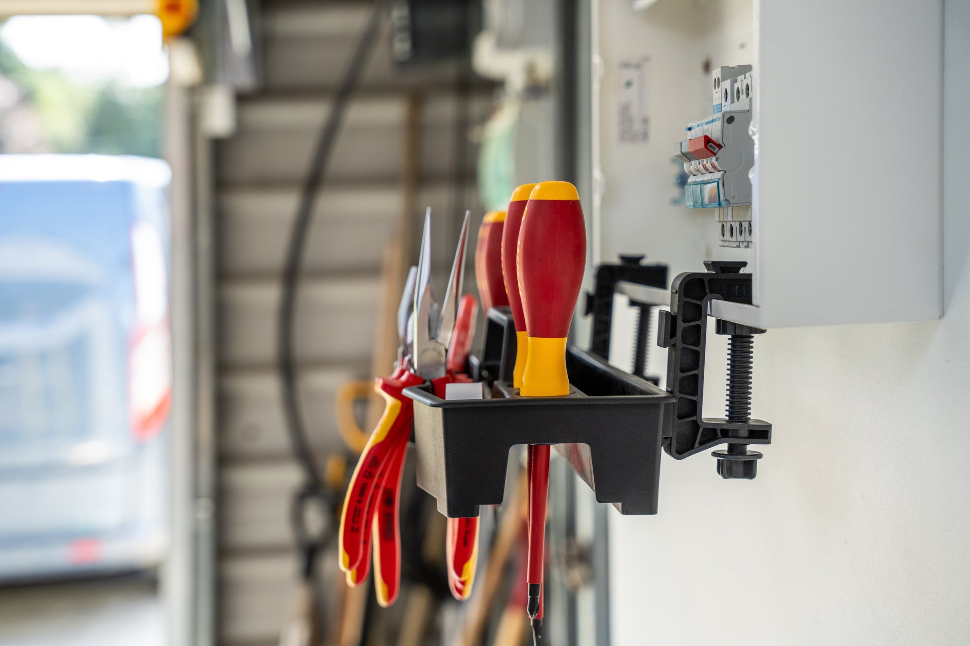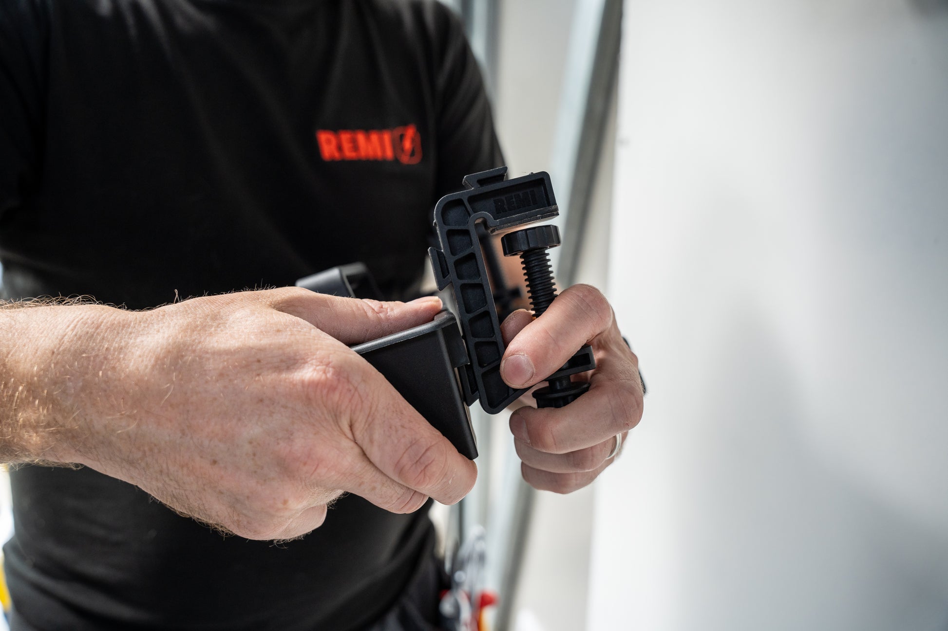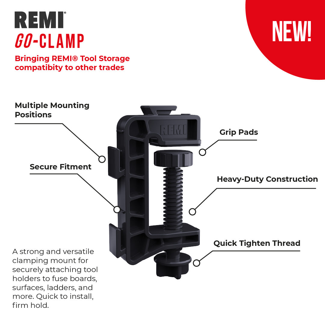 The REMI® Go-Clamp is designed to hold the Remi Tooltray on UK style fuseboards, ladders, Mewps, work benches, and various different applications.