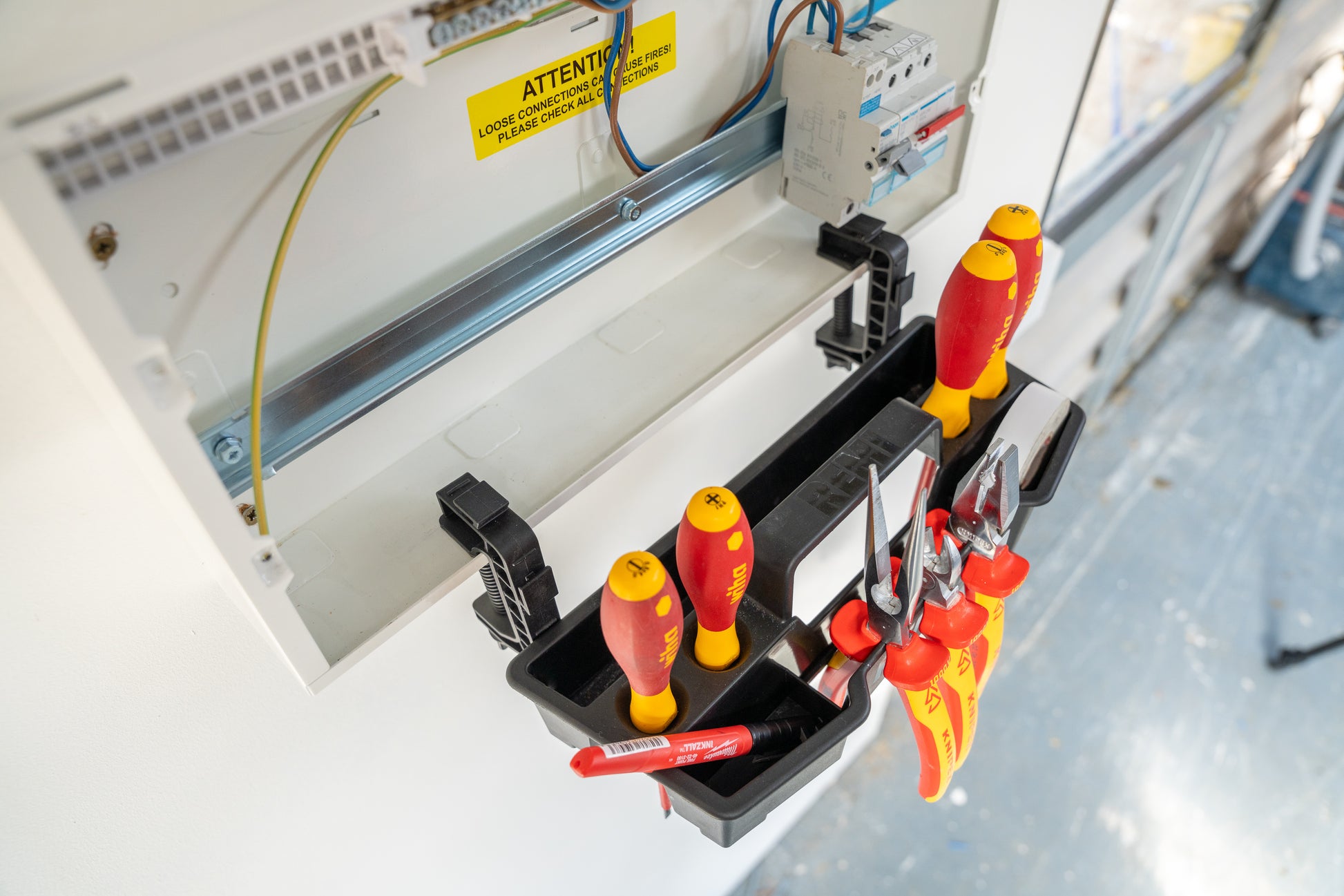- Mounts onto fuseboard enclosures, ladders, MEWPs, worktops.